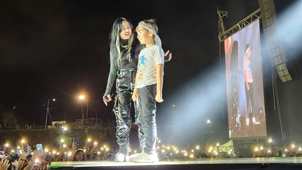 Además, el recital tuvo sus picos de emoción con cada muestra de agradecimiento que brindó la artista y los intentos de estar cerca de la gente. Así, subió a un pequeño fanático para cantar tomados de la mano “Plegarias”. El niño lagrimeó de emoción mientras observaba a la cantante y a la multitud presente entre los que se encontraba su padre.