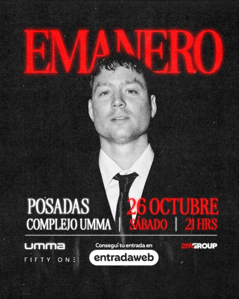 En el marco de su gira nacional, el rapero y músico Emanero llega a Posadas. Presentará sus éxitos, en un show único. La cita será este sábado 26 de octubre en el Complejo UMMA.