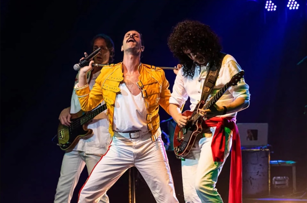 Por orden de aparición, Nicolás Cuenca (como Roger Taylor en batería), Matías Merceauroix en dirección musical, teclados y voces adicionales, Sergio Habat (como John Deacon en bajo), César Barabino (el Brian May en guitarra), y Mariano Zito en el rol de Freddie Mercury, desplegaron la representación con elevada intensidad desde los primeros acordes.