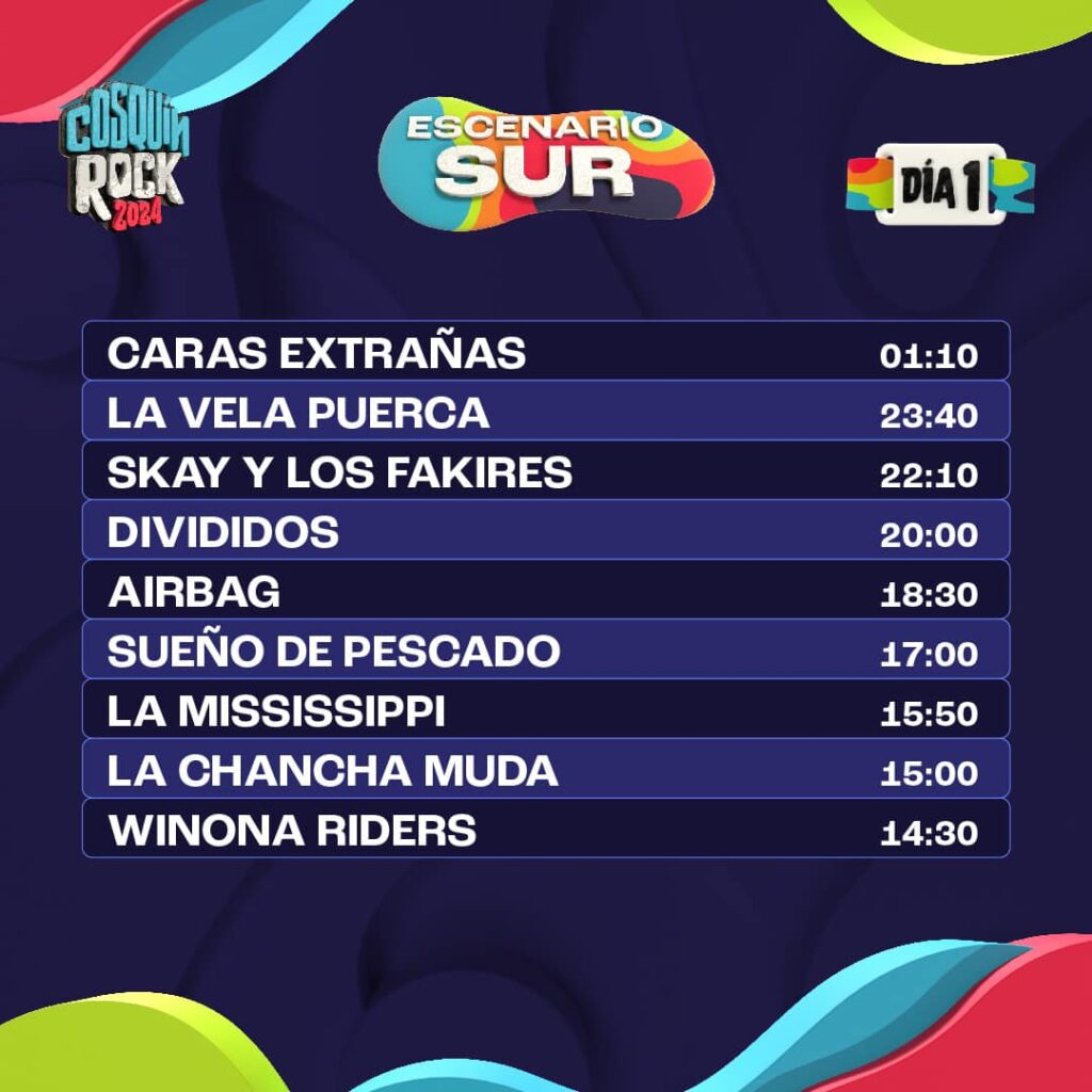 El Cosquín Rock 2024 está cada vez más cerca, por ello la organización del festival confirmaron los horarios en los que cada artista y banda subirá a los diferentes escenarios. El evento se llevará a cabo el 10 y 11 de febrero en el Aeródromo de Santa María de Punilla, Córdoba.