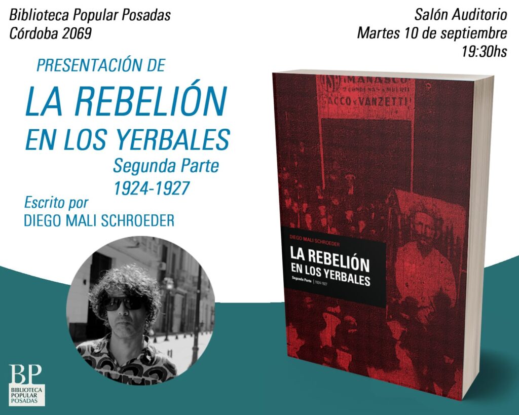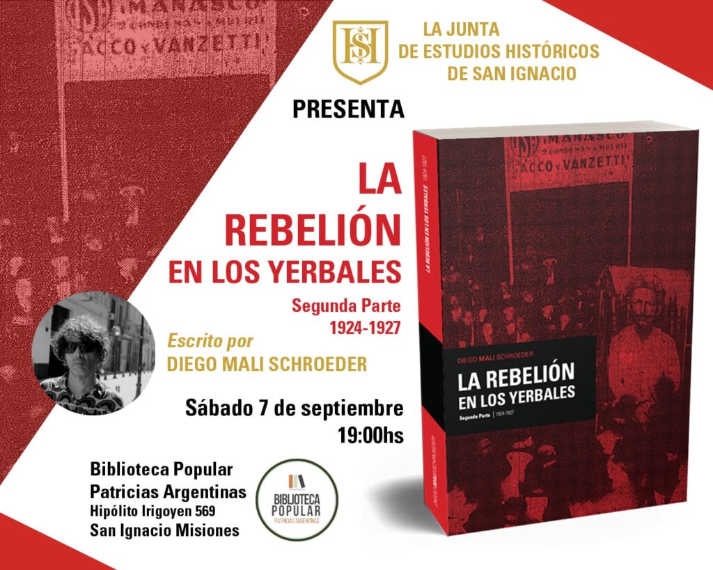 La segunda parte de La Rebelión en los Yerbales será presentada en Posadas el jueves 5 de septiembre. De 18 a 20 hs. En la Facultad de Humanidades y Ciencias Sociales (calle Tucumán 1946). Y el martes 10 de septiembre, desde las 19:30 hs, en la Biblioteca Popular Posadas (calle Córdoba 2069).