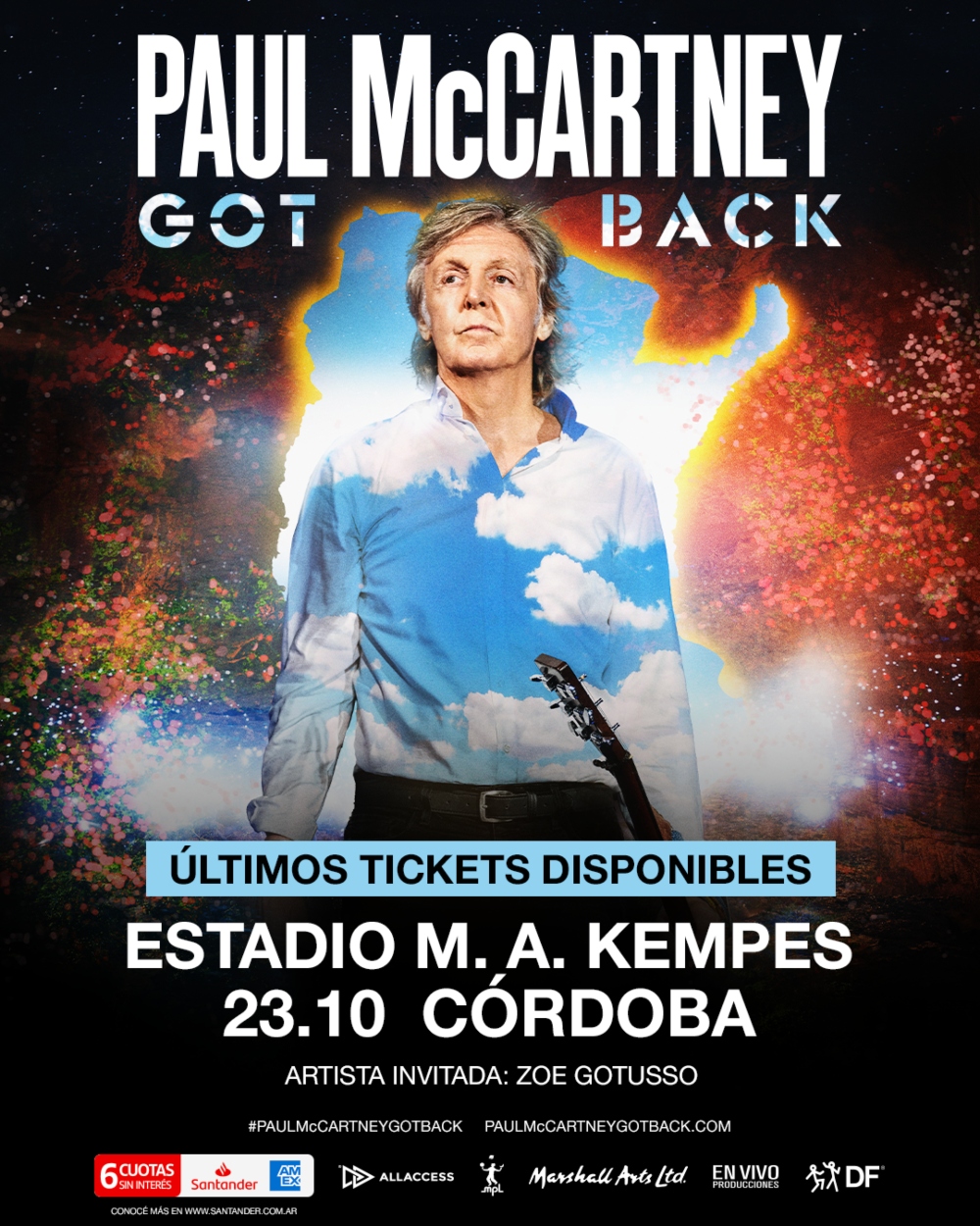 Paul McCartney cumple la promesa que hizo en su visita al país en 2019, y regresará a Córdoba con su nuevo «Got Back Tour». Luego de su paso por Buenos Aires, con dos shows sold-out en el estadio Monumental de Núñez, este miércoles 23 de octubre es el turno de la visita a las sierras cordobesas, en una producción conjunta entre DF Entertainment y En Vivo.